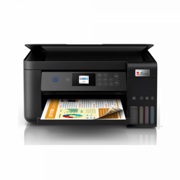 La nueva multifuncional inalámbrica EcoTank 4 en 1 L14150 te ofrece impresión 100% sin cartuchos con soporte para formatos anchos hasta A3+, con botellas de tinta diseñadas para evitar derrames y codificadas para llenado fácil de cada color. La EcoTank L14150 te permite imprimir hasta 7.500 páginas en negro o 6.000 páginas a color. Imprime cientos de proyectos sin interrupciones, con los juegos de botellas de tinta original Epson que equivalen a unos 35 juegos de cartuchos de tinta, ahorrando hasta 90% en tinta con las botellas de reemplazo de bajo costo. Imprime sin la necesidad de una PC, gracias a su pantalla de 2,4".